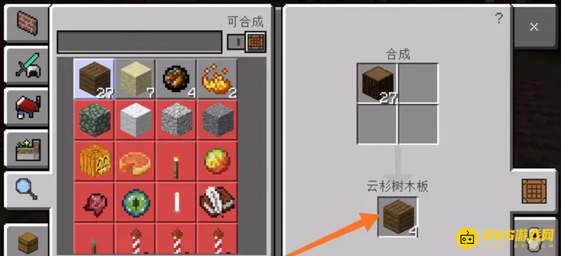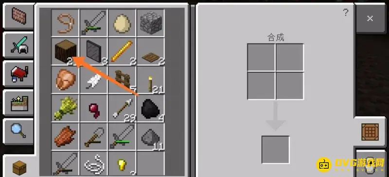 2、获得橡木块之后,我们用橡木块合成像木板合成的越多越好,如下图所示。