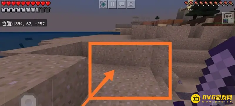 7、然后我们再来到海边挖沙,即可获得沙子。靠近挖掘的地方,即可获得沙子方块,如下图所示。