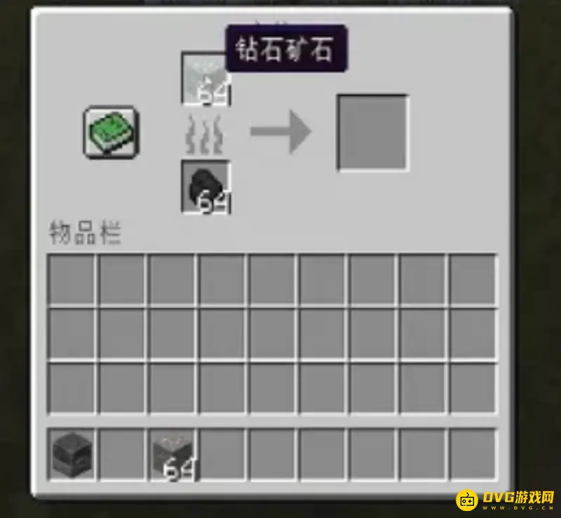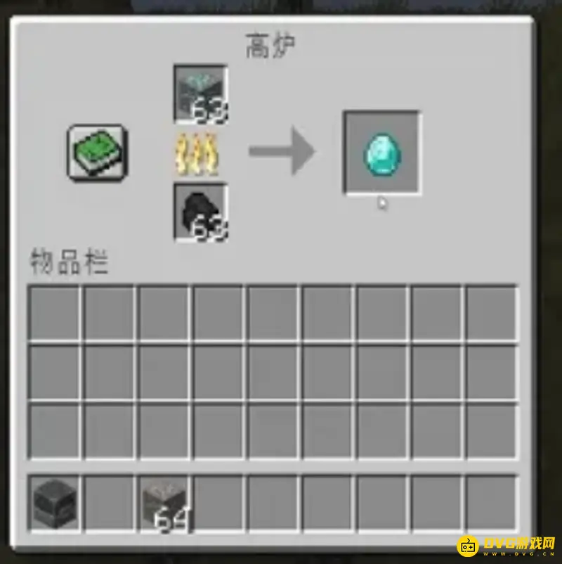 4、把钻石矿和煤炭放上去,这时高炉就会烧制成完整的钻石。