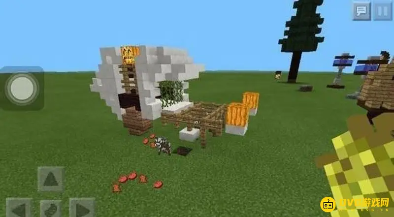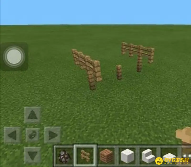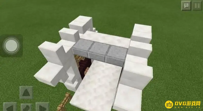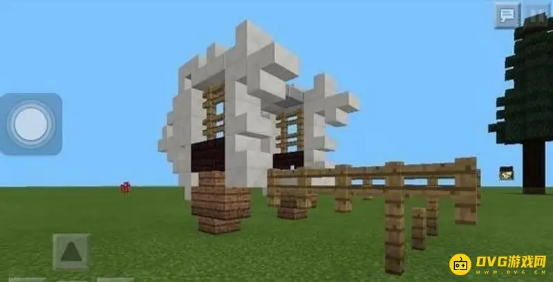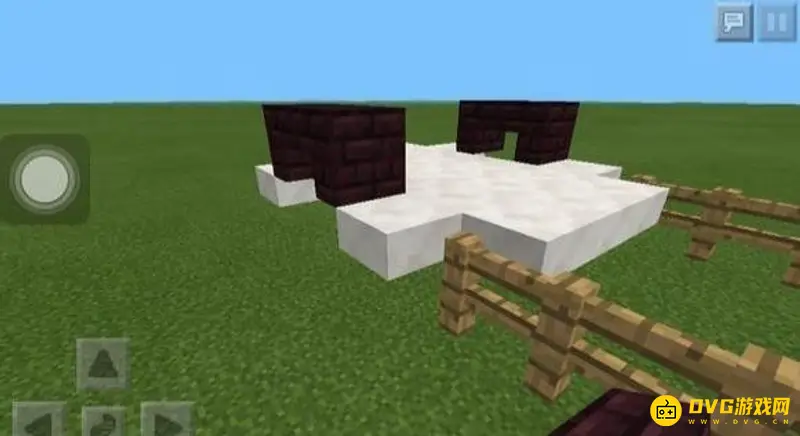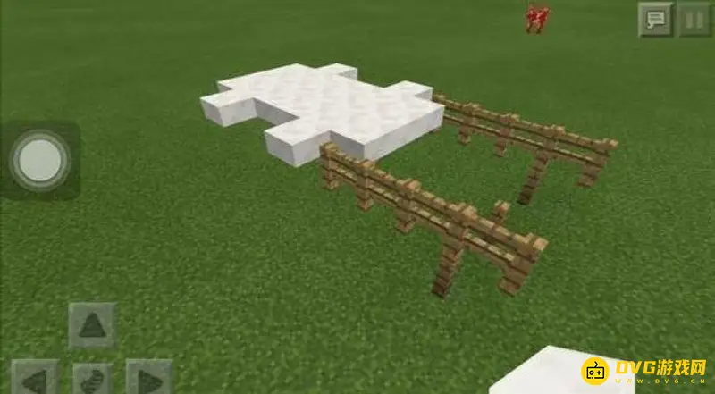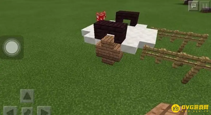 2、搭好栅栏之后我们用石英半砖在后面这样搭(可能会有些大喔 这个马车装饰适合放在户外呢)
