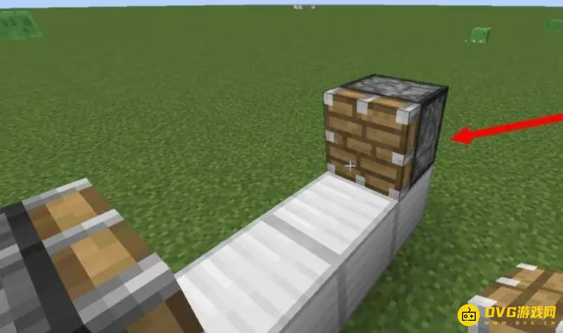 3.在方块的另一头放上一个活塞,普通的活塞,方向要正对着粘性活塞。