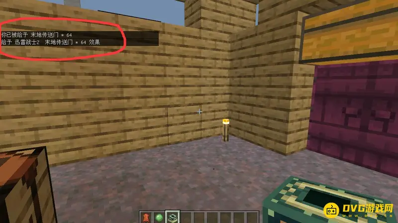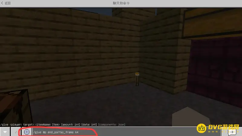 1,首先我们打开聊天框,输入获取物品的指令,再加上末地传送门英文名。