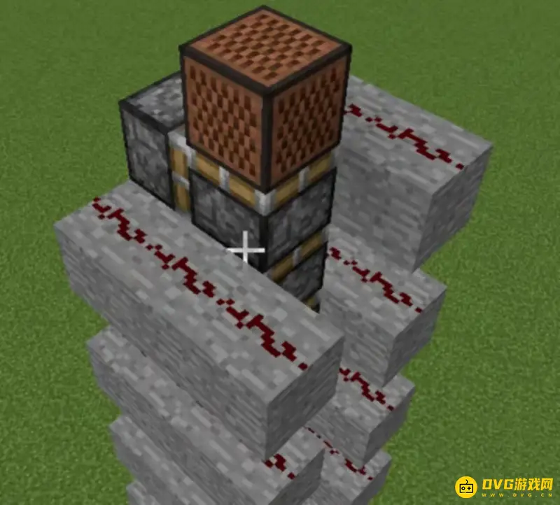 6.最顶层的活塞上方放一个不可移动方块音符盒
