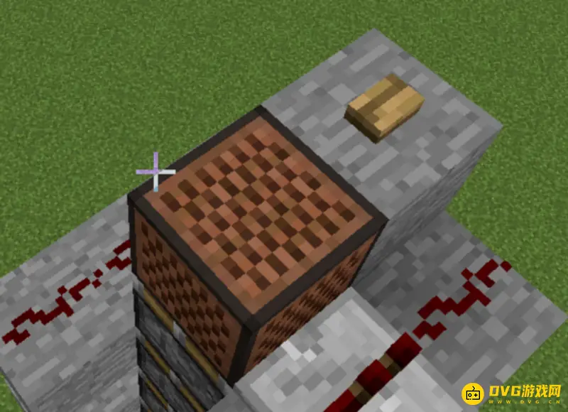 7.音符盒右侧中间的红石打掉,放红石中继器,音符盒后方放任意一个方块