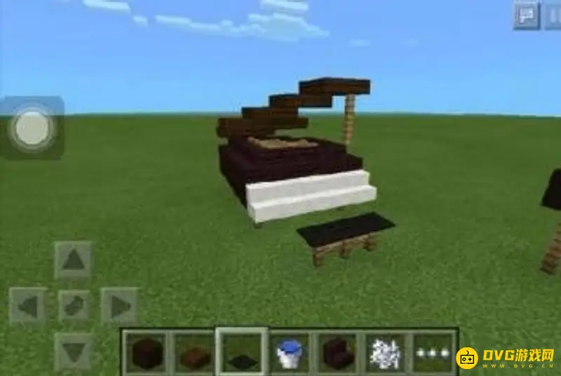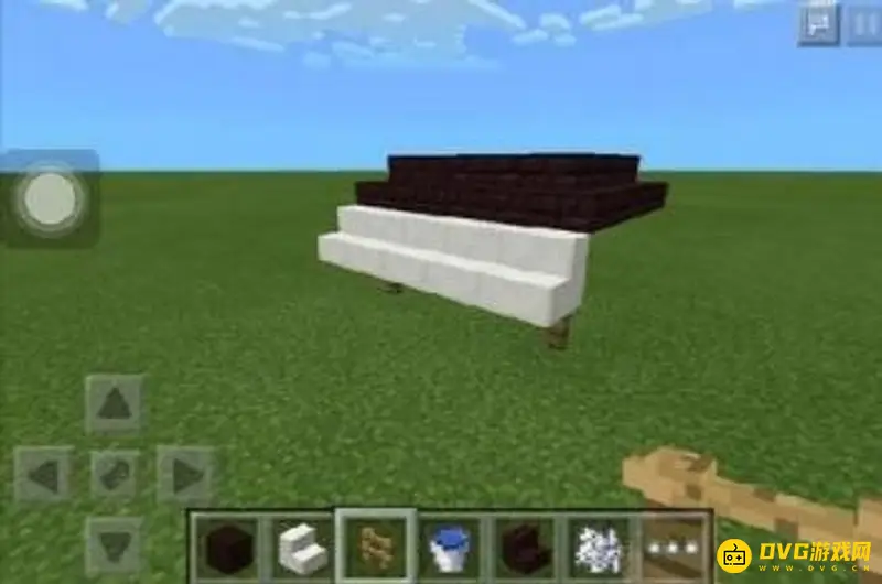 2、之后加上琴键和内部的小格子。在地平面放三个相连的云山木,然后再往上搭一格方块,放置上方石英台阶用。