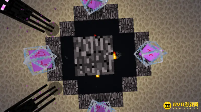 3、在打死末影龙之后,会出现龙蛋,把末影水晶放在龙蛋上下左右四个位置,水晶塔会重新点燃,末影龙就重生了
