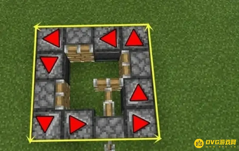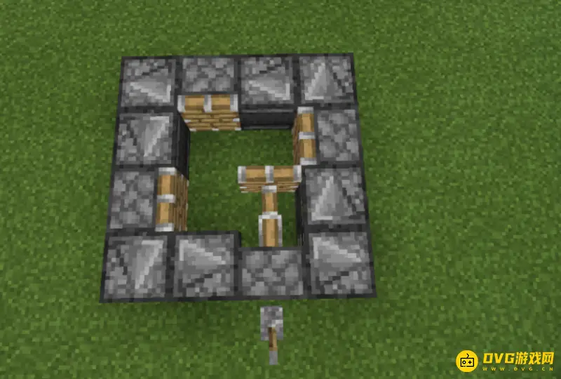 1、玩家需要准备9个侦测器与4个活塞,将它们按照下图所示的位置进行摆放。