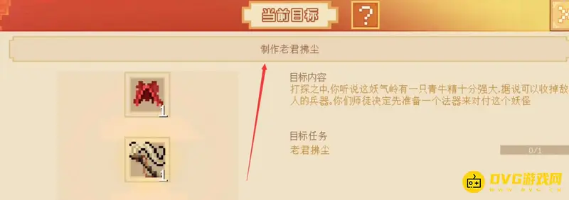 1、首先进入我的世界游戏,触发任务,制作老君拂尘。