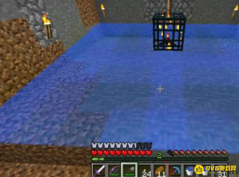 2.再往下挖一层,这样让刷怪笼作为9x9x3的中心。