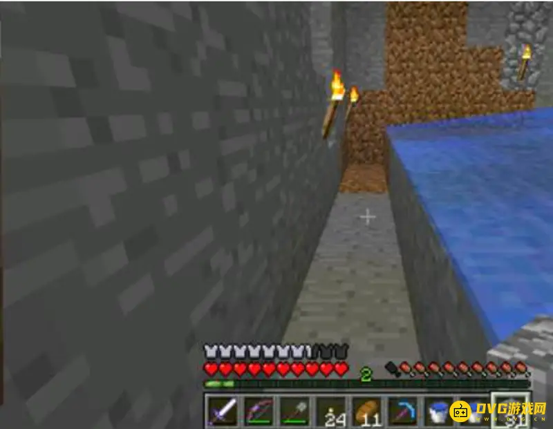 11.然后再往下挖2格,这样蜘蛛看到玩家就会往下走