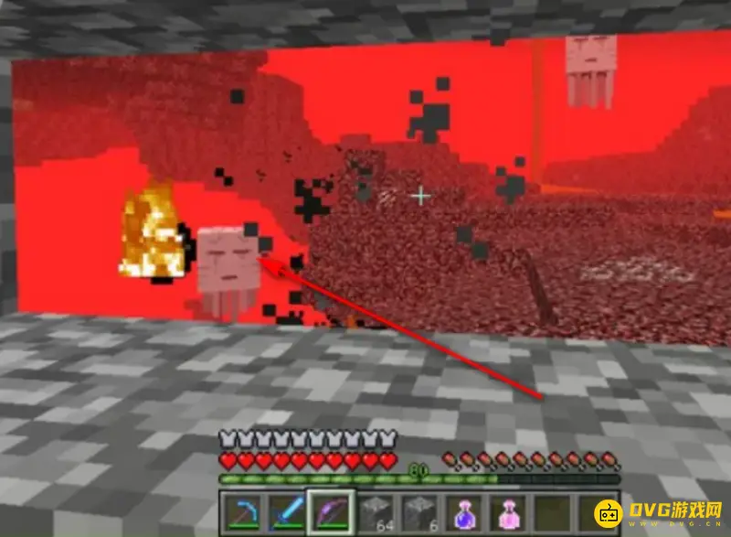 3.和恶魂玩乒乓球,利用剑来格挡恶魂喷射的火焰弹,当恶魂的火焰弹快打到我们时,我们就疯狂的键剑,就可以挡住火焰弹,而且还可以反弹回去打到恶魂。