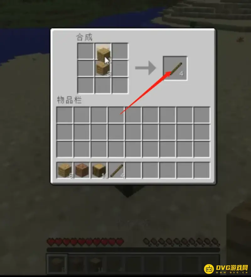 四、进入工作台,将木板放到合成栏,即可制成棍子,如下图所示。