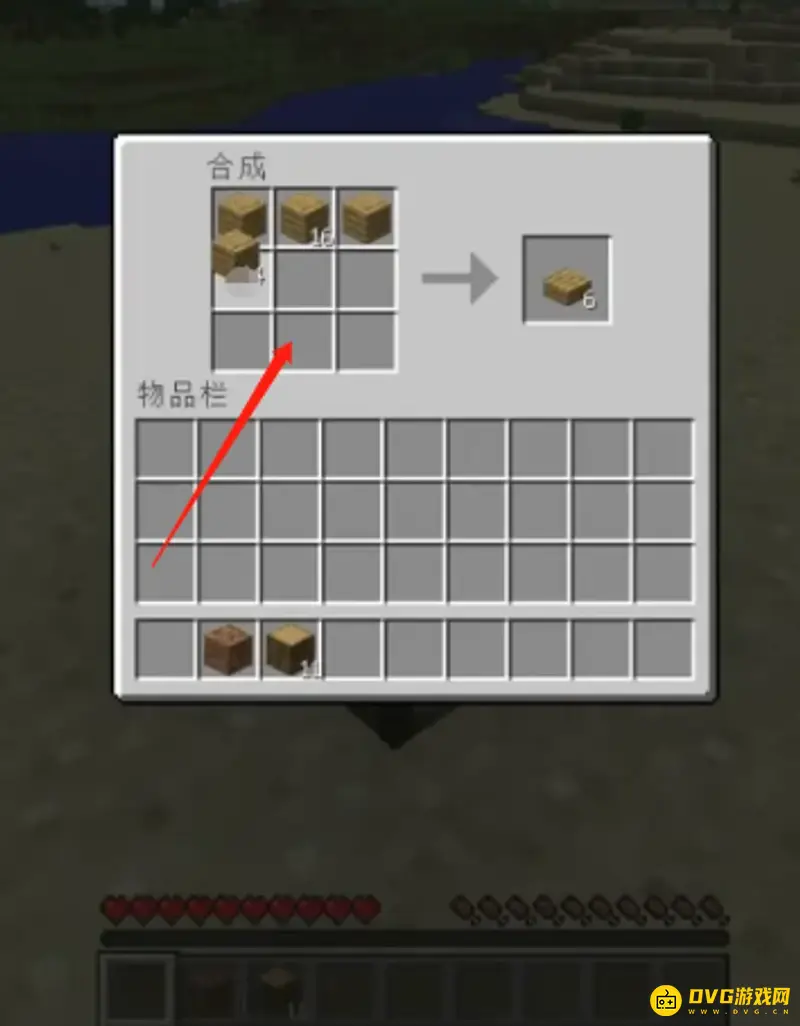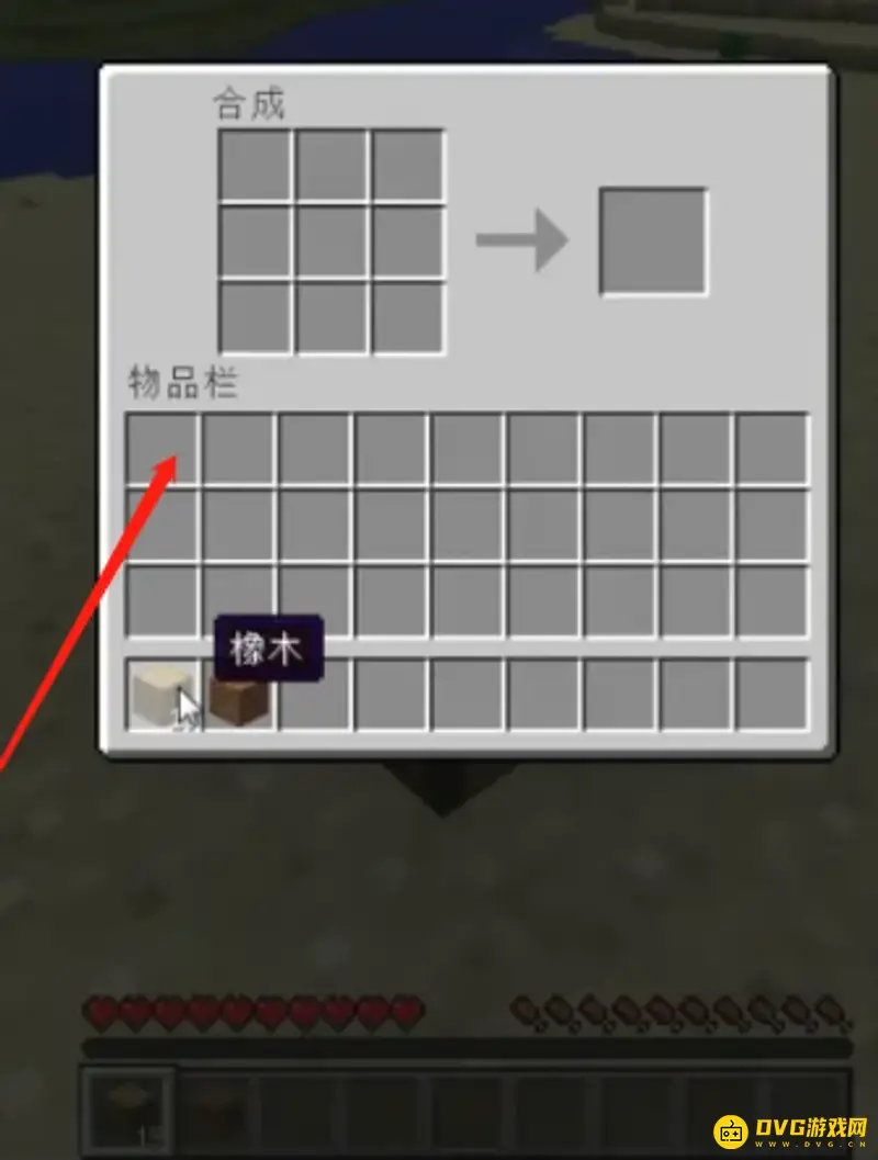 三、进入工作台后,将物品栏里的木板移动到合成栏里进行操作,如下图所示;