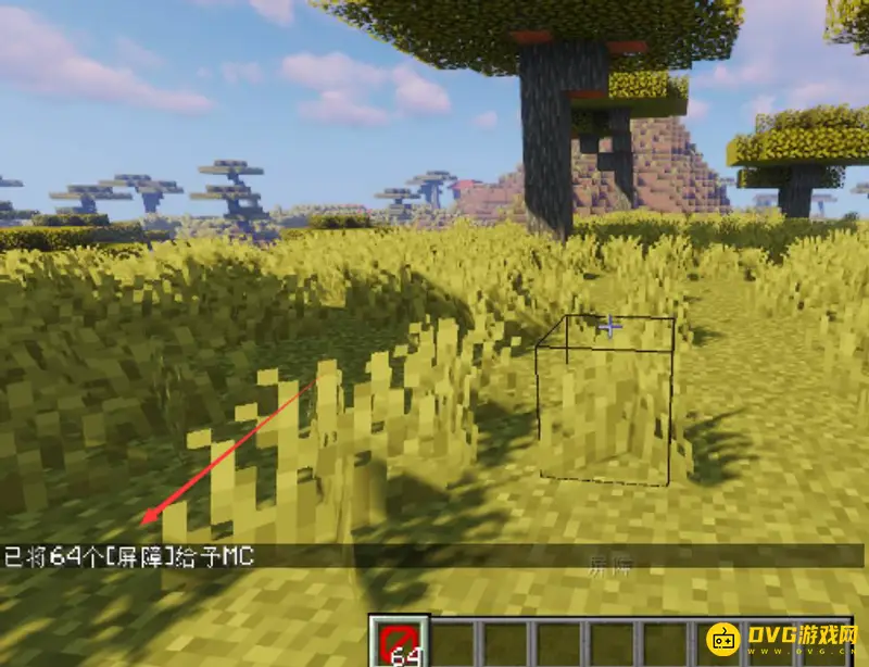 二、最后系统就会提示玩家已经获得了屏障(透明方块),如下图所示。
