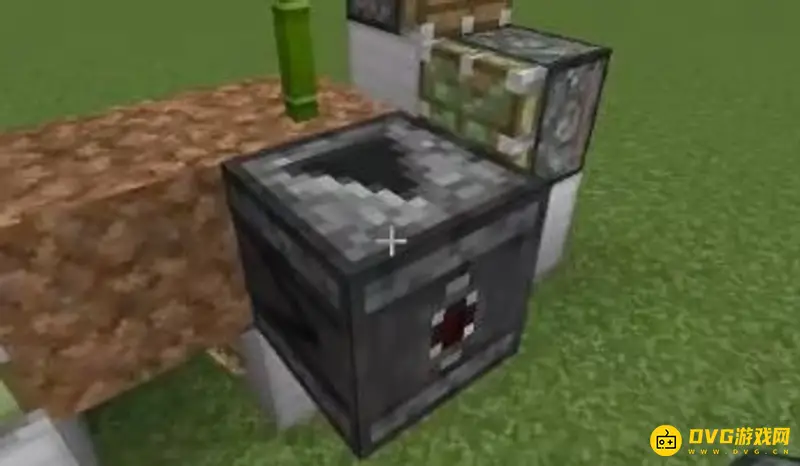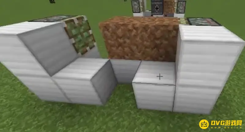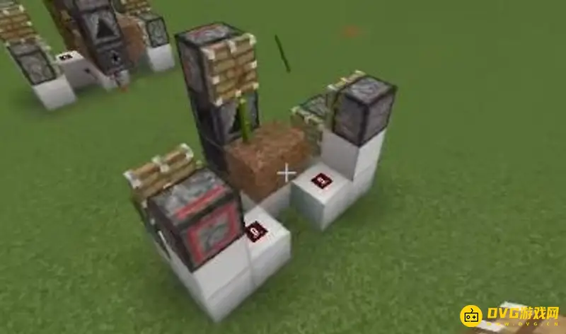 6、然后是侦测器的放置,摆法样式如图,再在顶端放一个活塞。