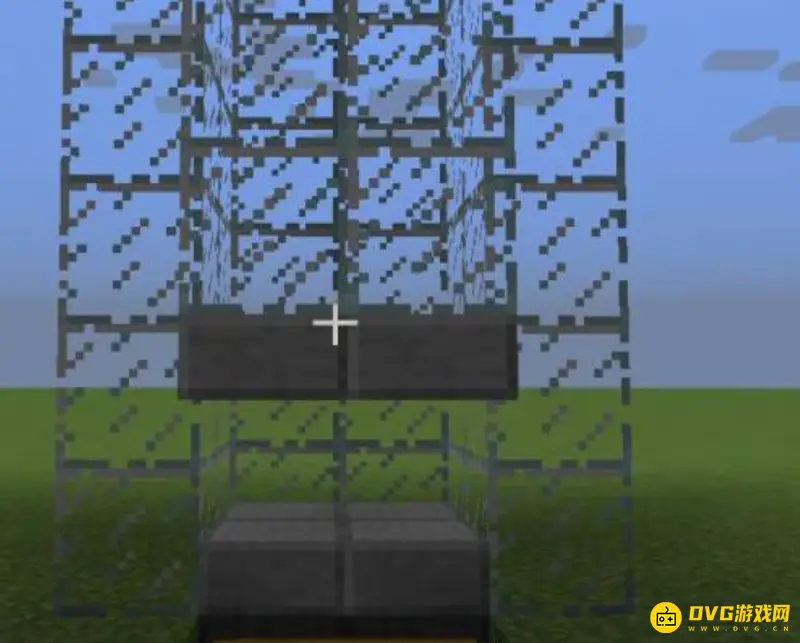 8.回到刷怪塔顶部,将纵向的两边也像横向的那样做一个长8格宽2格高2格的凹形区域。