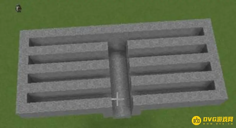 3.然后用石头将两边分别提高2格的高度形成一个凹形。