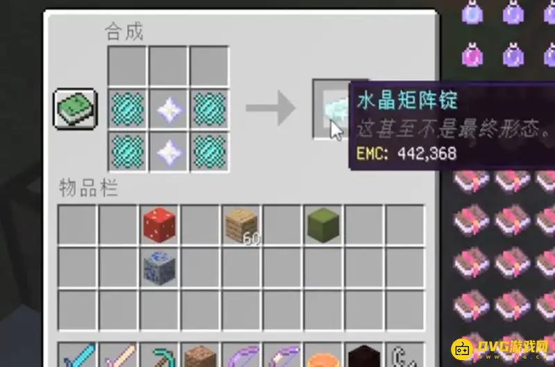2、水晶矩阵锭需要2个下界之星和4个钻石晶格合成,合成方法如图。