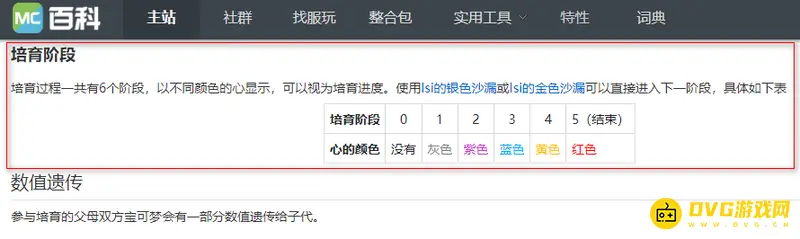 培育过程一共有6个阶段,以不同颜色的心显示,可以视为培育进度。使用Isi的银色沙漏或Isi的金色沙漏可以直接进入下一阶段,具体如下表。