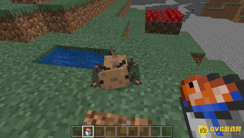 拿着热带鱼桶右键点击美西螈就可以成功喂食了。