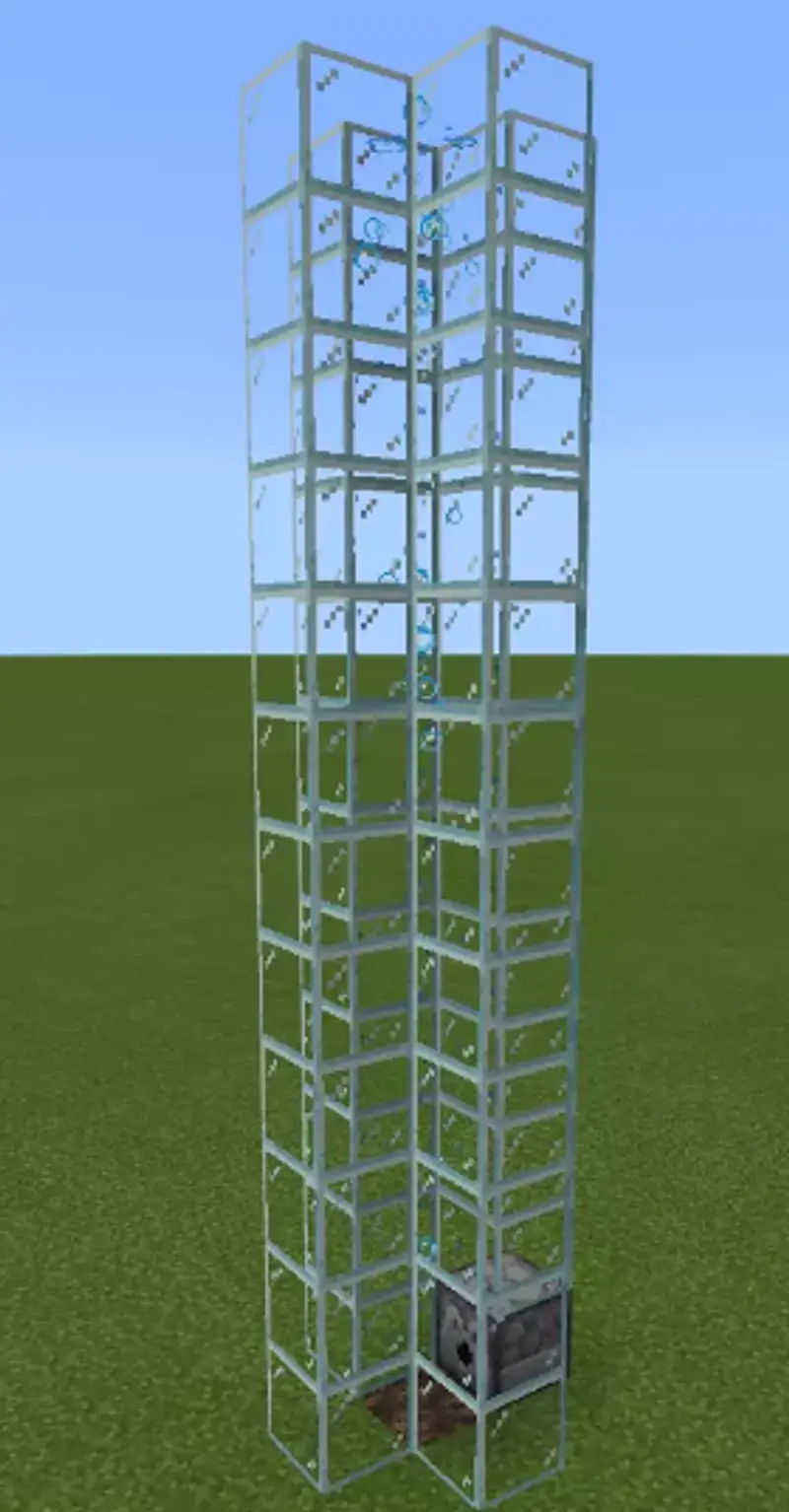 2、使用玻璃将四周包裹起来,高度为你需要的向上传送的高度。