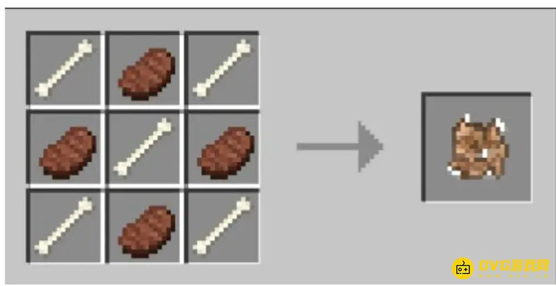打开我的世界游戏界面,喂养幼龙直至它到达第三阶段,制作龙的食物需要4块肉和5根骨头,根据公式来制作。