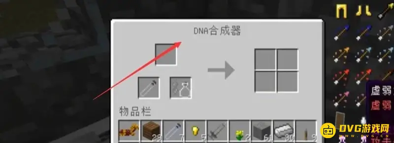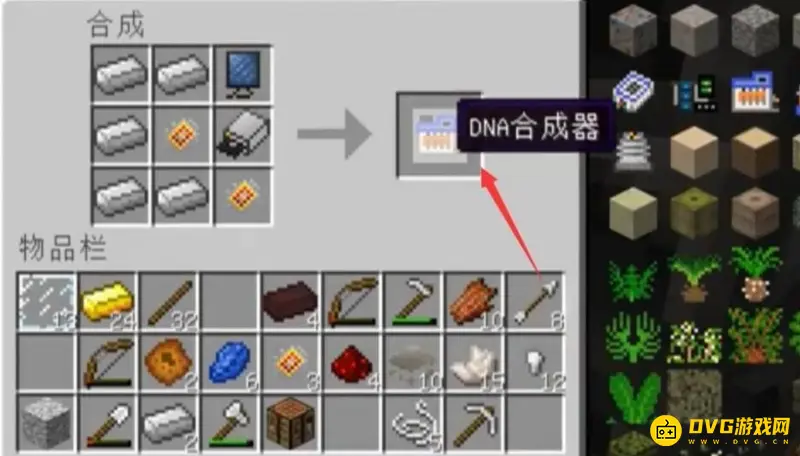 1.首先玩家进入游戏,使用铁钉、显示屏等合成一个DNA合成器
