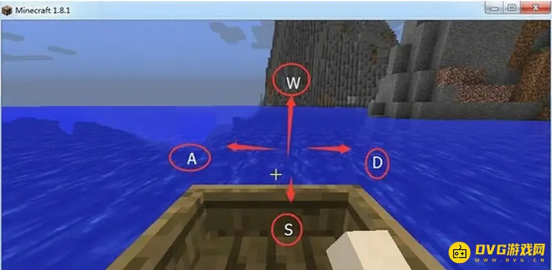2. 把船放在了砂子中间之后十字光标对准船只,点击鼠标右键,我们就上船了!上船后使用"W"、"A"、"S"、"D"键控制方向就好了。