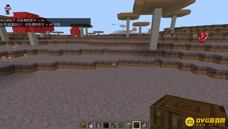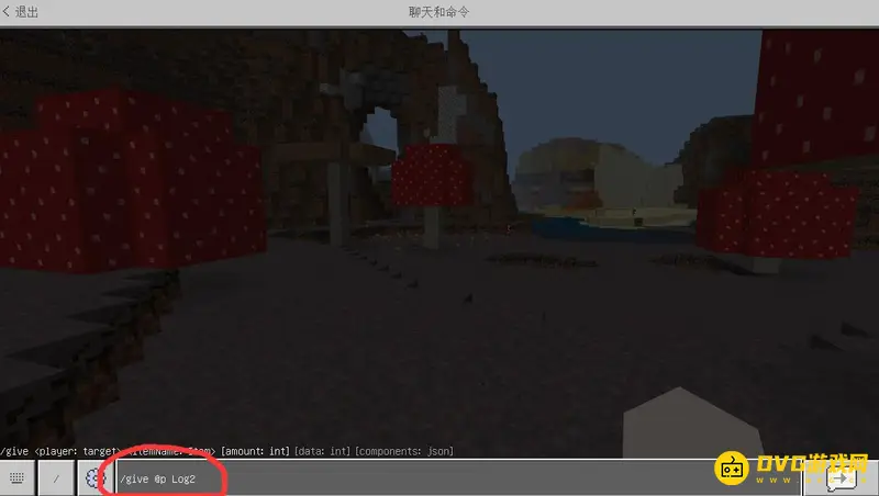 1,首先我们进入聊天框输入获得物品的指令,输入深色橡木的英文。