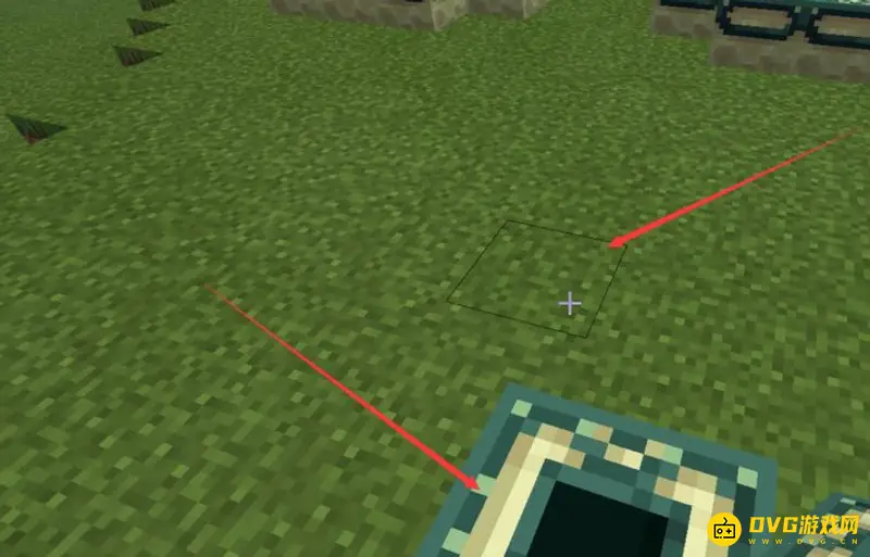 2、然后我们站在垫高的方块上,在方块前一格的位置放置末地传送门方块。