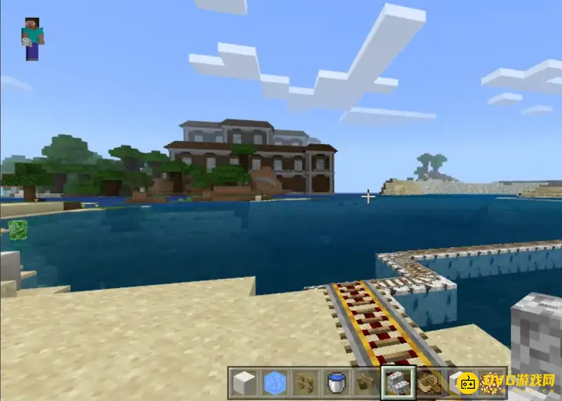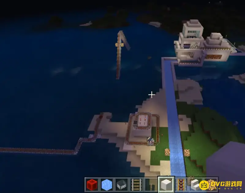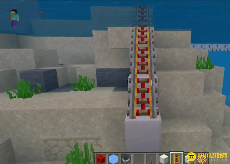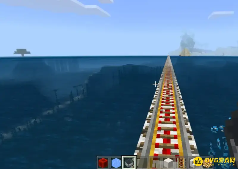 3.在海面下铁轨也能放置,所以做一个延伸到水下的铁轨。