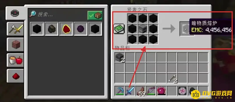 3、暗物质方块可以由四个暗物质在工作台上合成获得,也就是说暗物质熔炉需要准备32个暗物质。