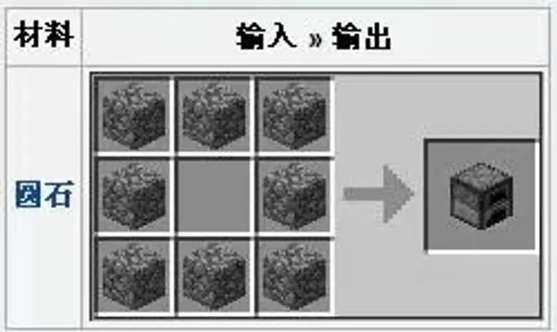 2、其中熔炉可以由八个圆石在工作台上合成获得。