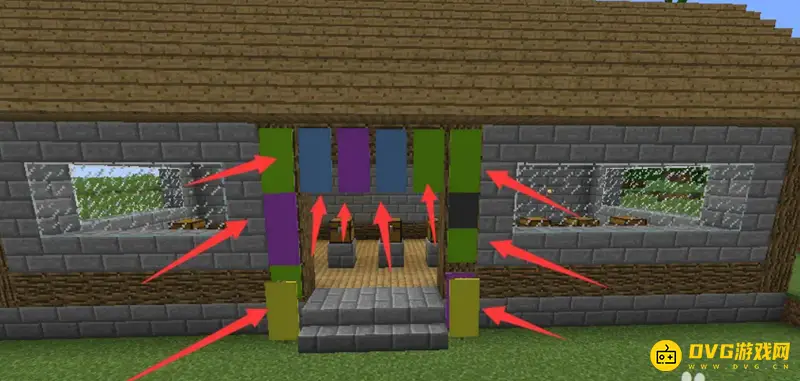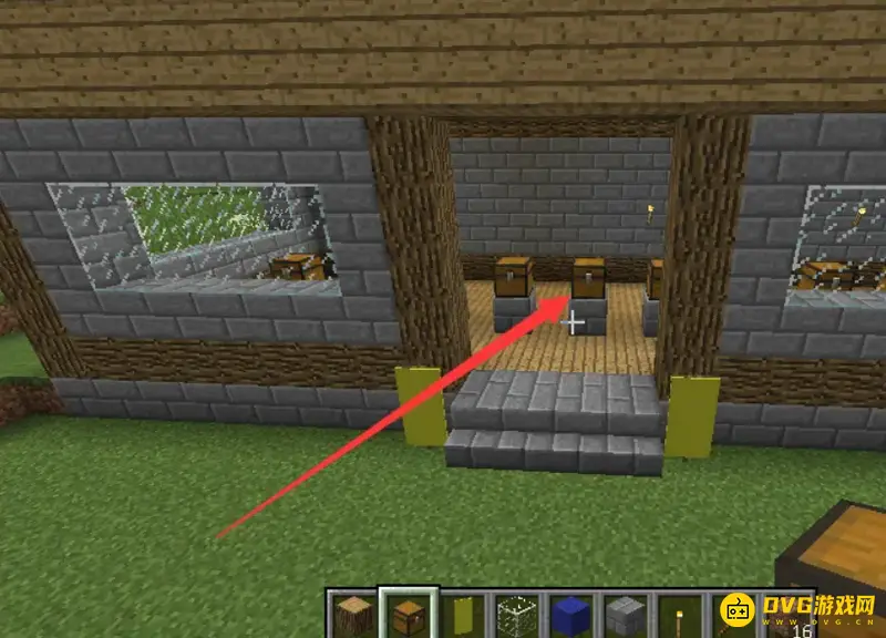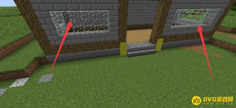 然后用石砖把商铺的墙建好,中间用玻璃来当做窗户,可以透光防止生怪。