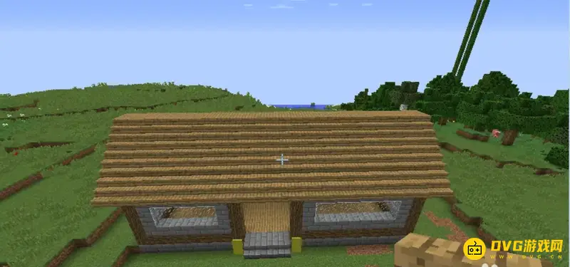 然后就是屋顶了,屋顶用的是橡木木板做的橡木楼梯,颜色适中。