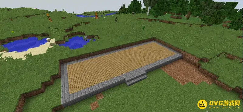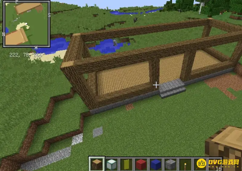 首先选择一块面积适中的地方建造商铺,然后用石砖和木板铺地。