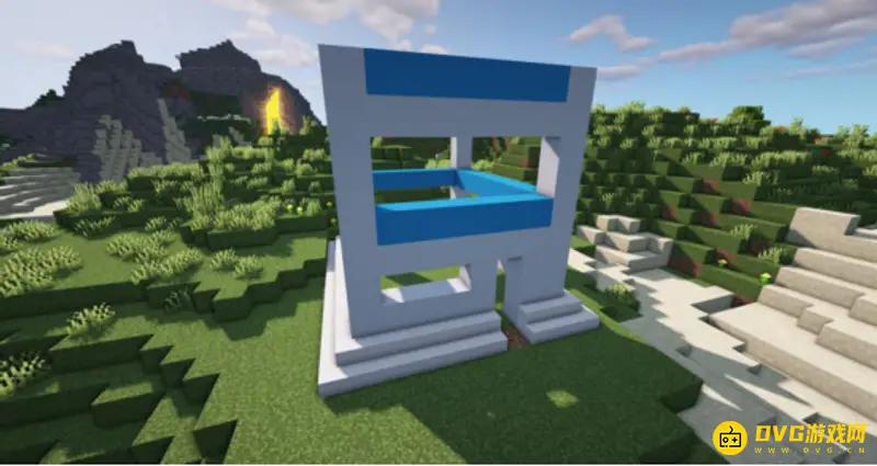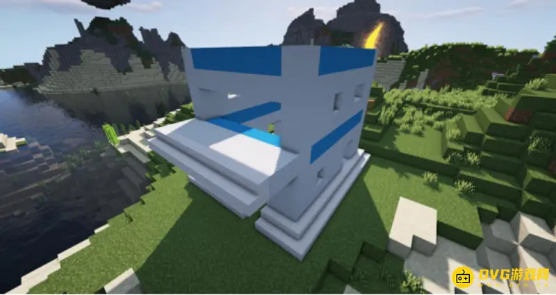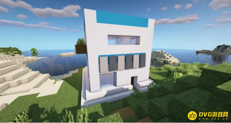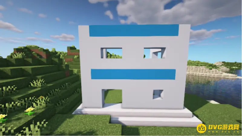 4、首先是正面,分别使用白色混凝土和淡蓝色混凝土搭出图中结构