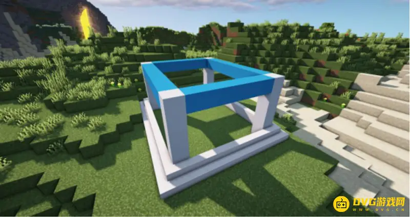 2、然后在这个框的四个角分别放上五格白色混凝土,使用淡蓝色混凝土在四根柱子的顶层围一圈
