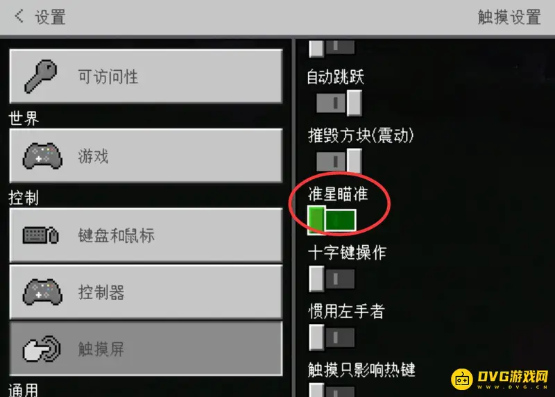 4.在右侧的菜单中找到准星瞄准并点击。