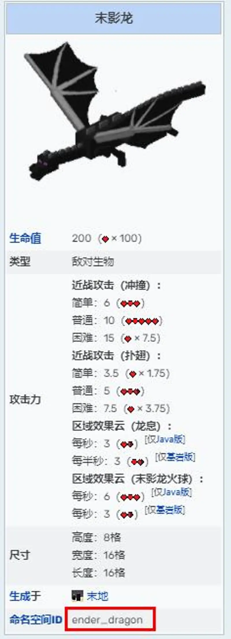根据我的世界百科显示,末影龙英文是Ender Dragon,是生成在末路之地的BOSS,minecraft中的两大BOSS之一。