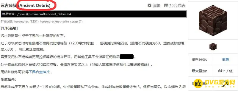 2,然后找到远古残骸的相关说明,就可以发现英文名称了,为Ancient Debris。