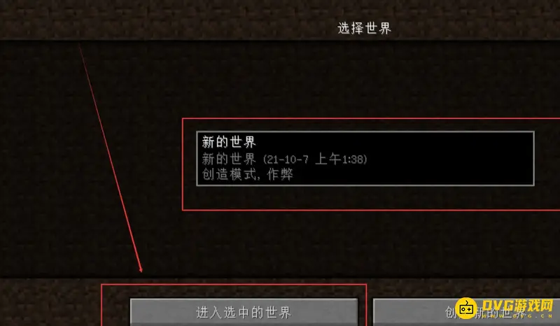 1.首先打开我的世界游戏,双击选择一个世界,等待加载完成进入游戏。