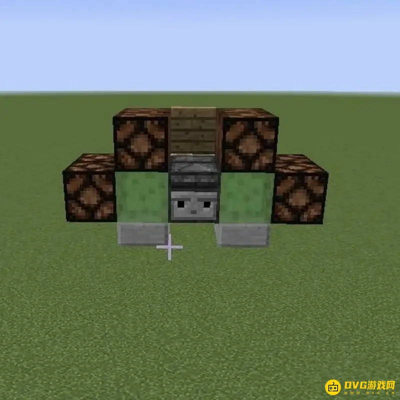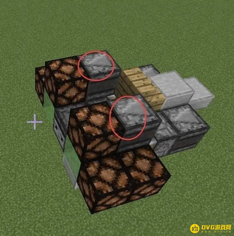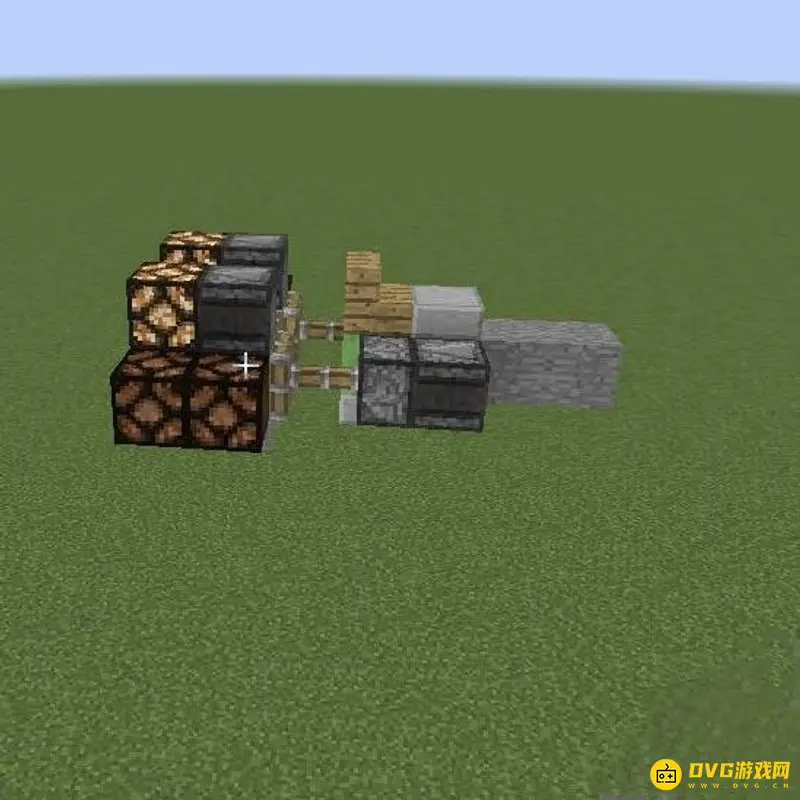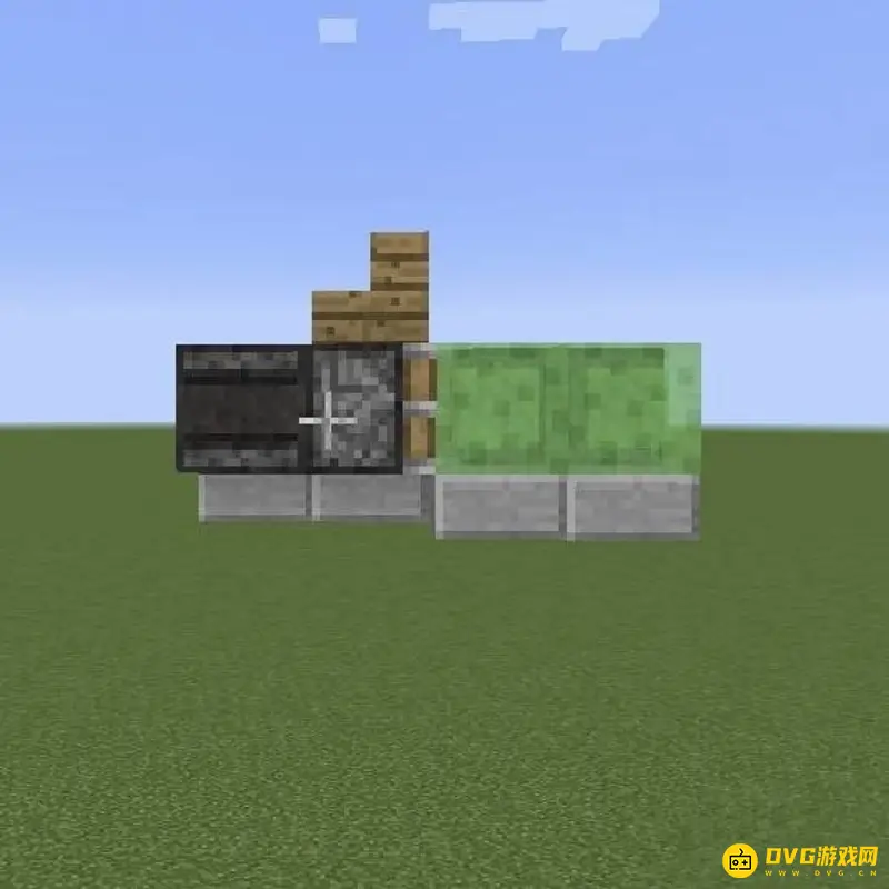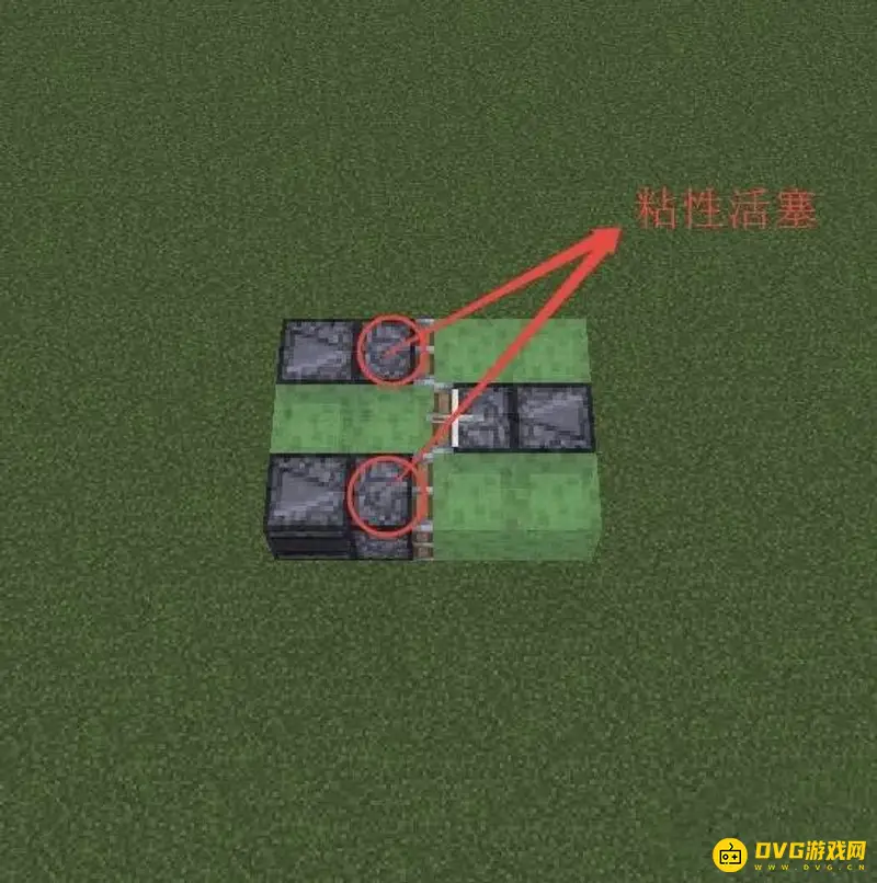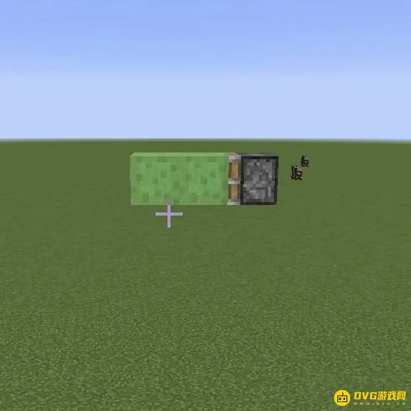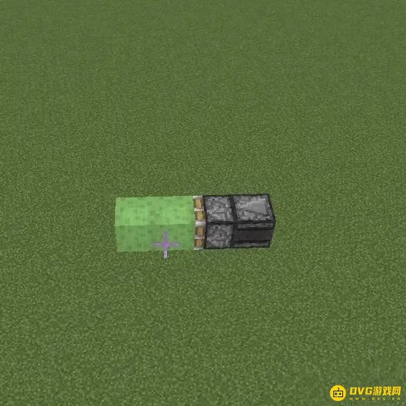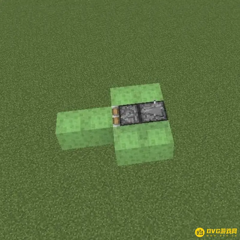 1、首先玩家放1个活塞,在前面再放2个粘液块,如下图所示。