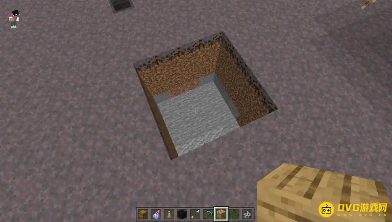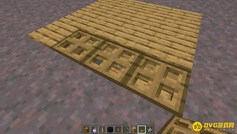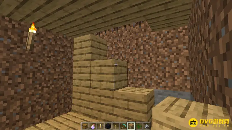 2,接着我们在地下铺上木板,放上火把,再用木板做个台阶。