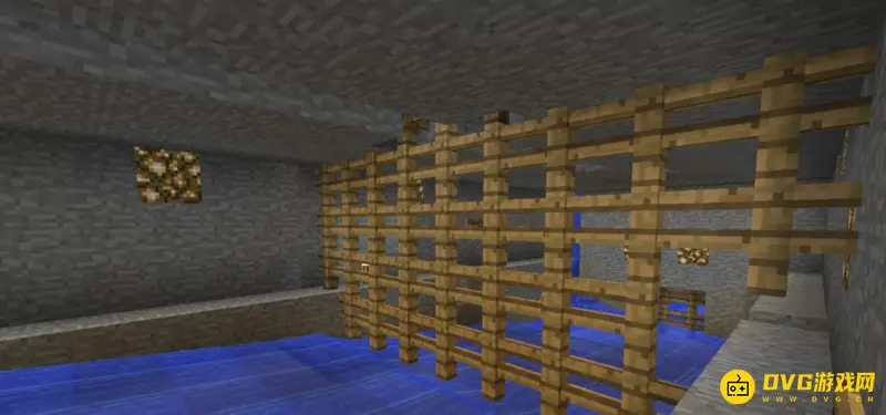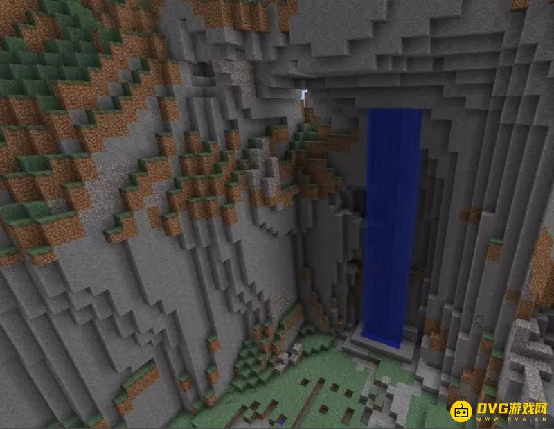 3、利用自然环境也是一个十分聪明的做法,将河流加工成一个瀑布,之后在瀑布后面挖掘出一个秘密基地,这样就可以让秘密基地非常隐蔽。