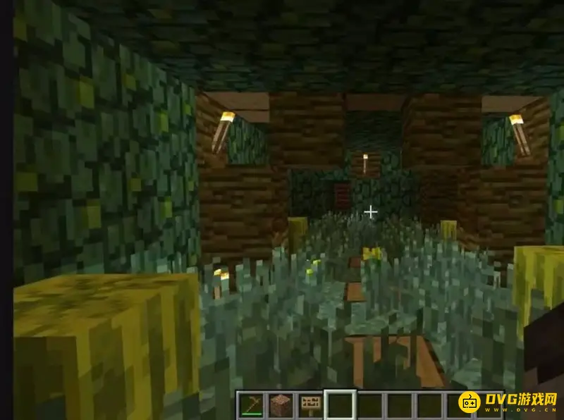 8、完成入口和内部的细节处理,秘密基地的大致模样基本就出现了,之后我们可以在内部进行其他个人喜爱的装饰。同时,也可以种植上不同的植物,或者放置不同的物块,为秘密基地增加一个独特的主题。