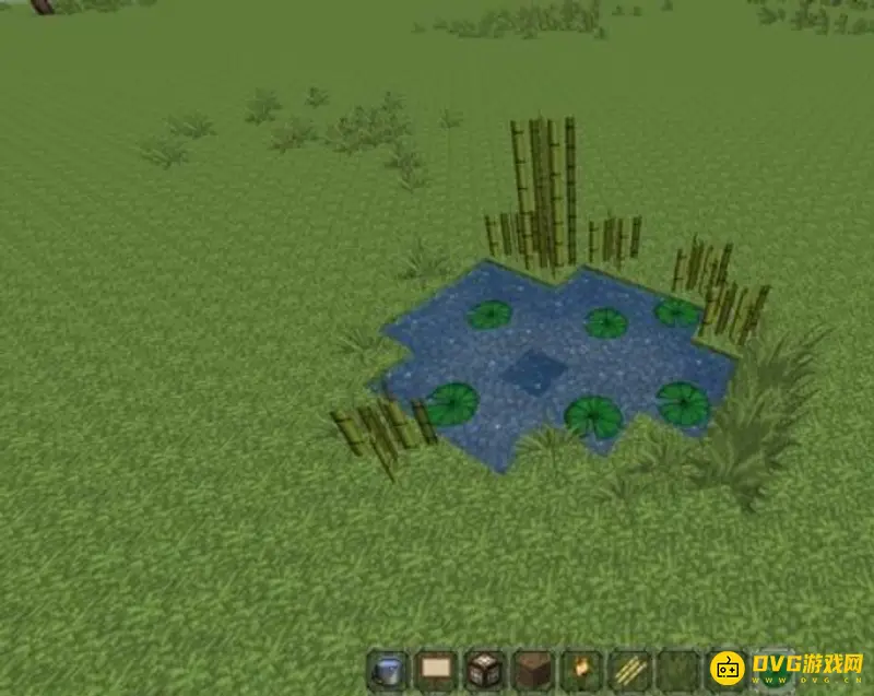 2、制作一个外环境来隐藏入口是一个较为普遍的方式,在外界制作一个水塘,在水塘中间设置一个入口,这样在空中就很难发现这是一个秘密基地的入口。