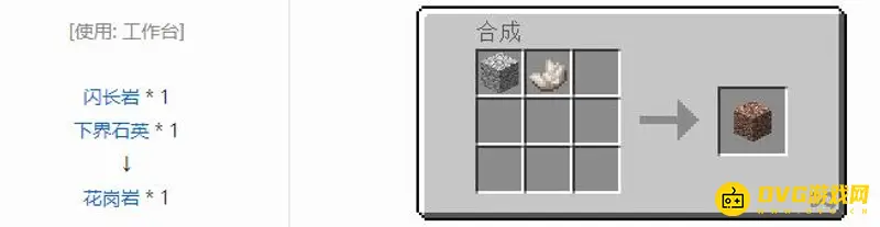 2,第二种是作为合成材料,闪长岩可合成花岗岩,安山岩,只需要去工作台中按照如图所示放置物品,即可合成花岗岩了。