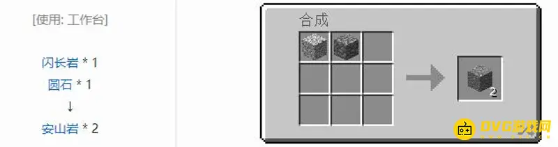 2,按照如图所示使用闪长岩和一个圆石即可合成安山岩。
