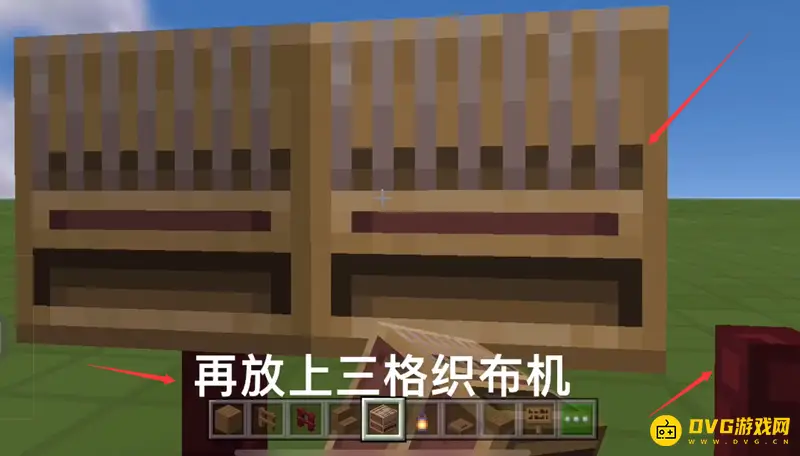 1、先放两个下界砖围墙,再放上三格织布机。这就是钢琴的按键。